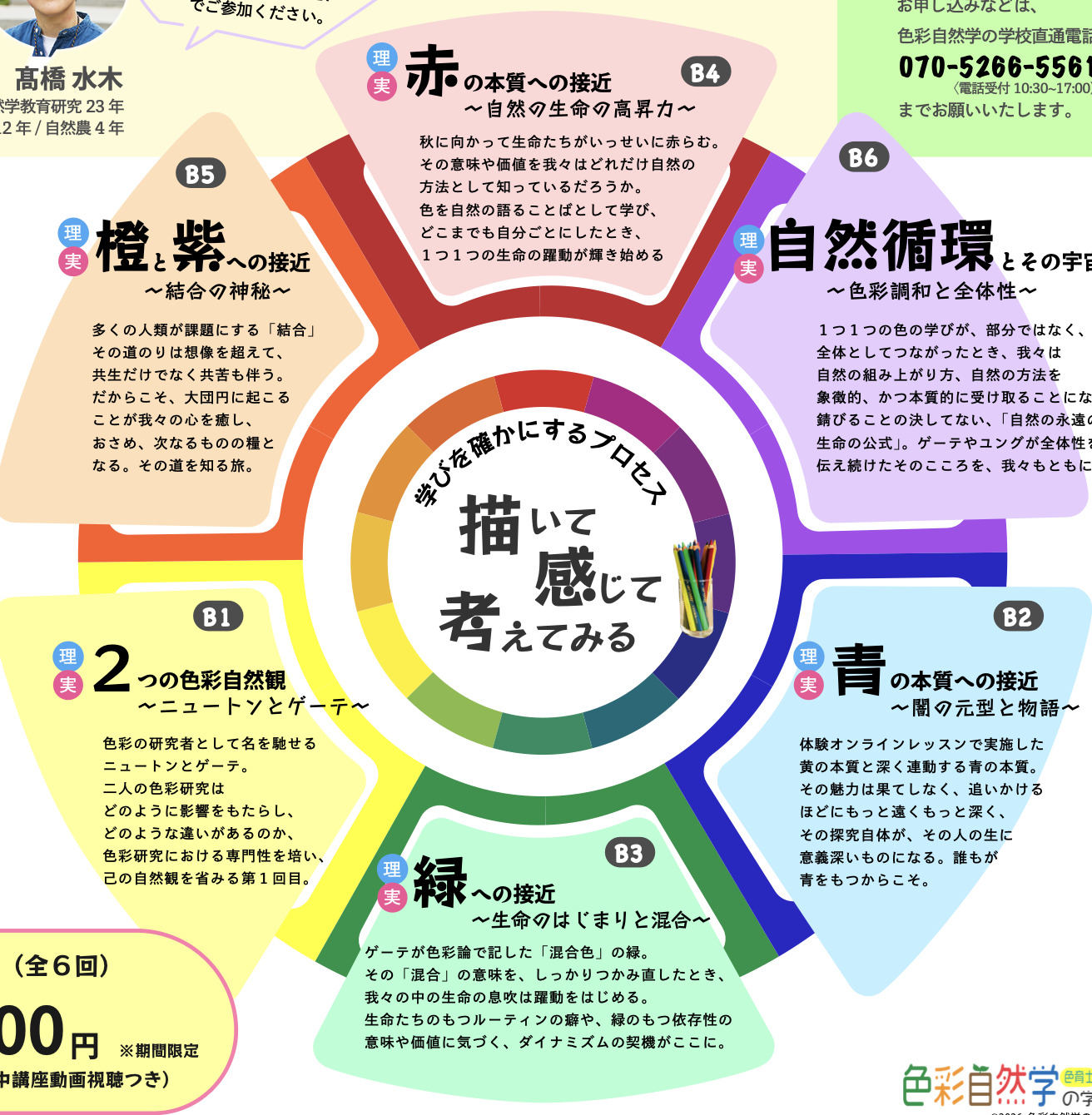 ・2003年より始まった前身となる日本色彩心理学研究所にて、ユング心理学(小自然)とゲーテ自然学(大自然)の解明統合から、2017年に誕生した学